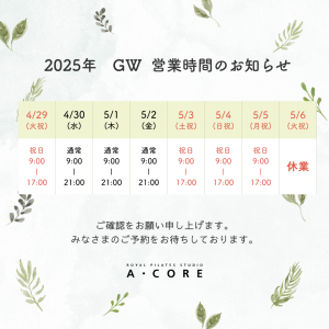 いつもピラティススタジオアコアをご利用頂き誠にありがとうございます。